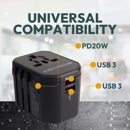 CACTECHS Universal Travel Adapter - All-in-one with USB-C and Dual USB Ports